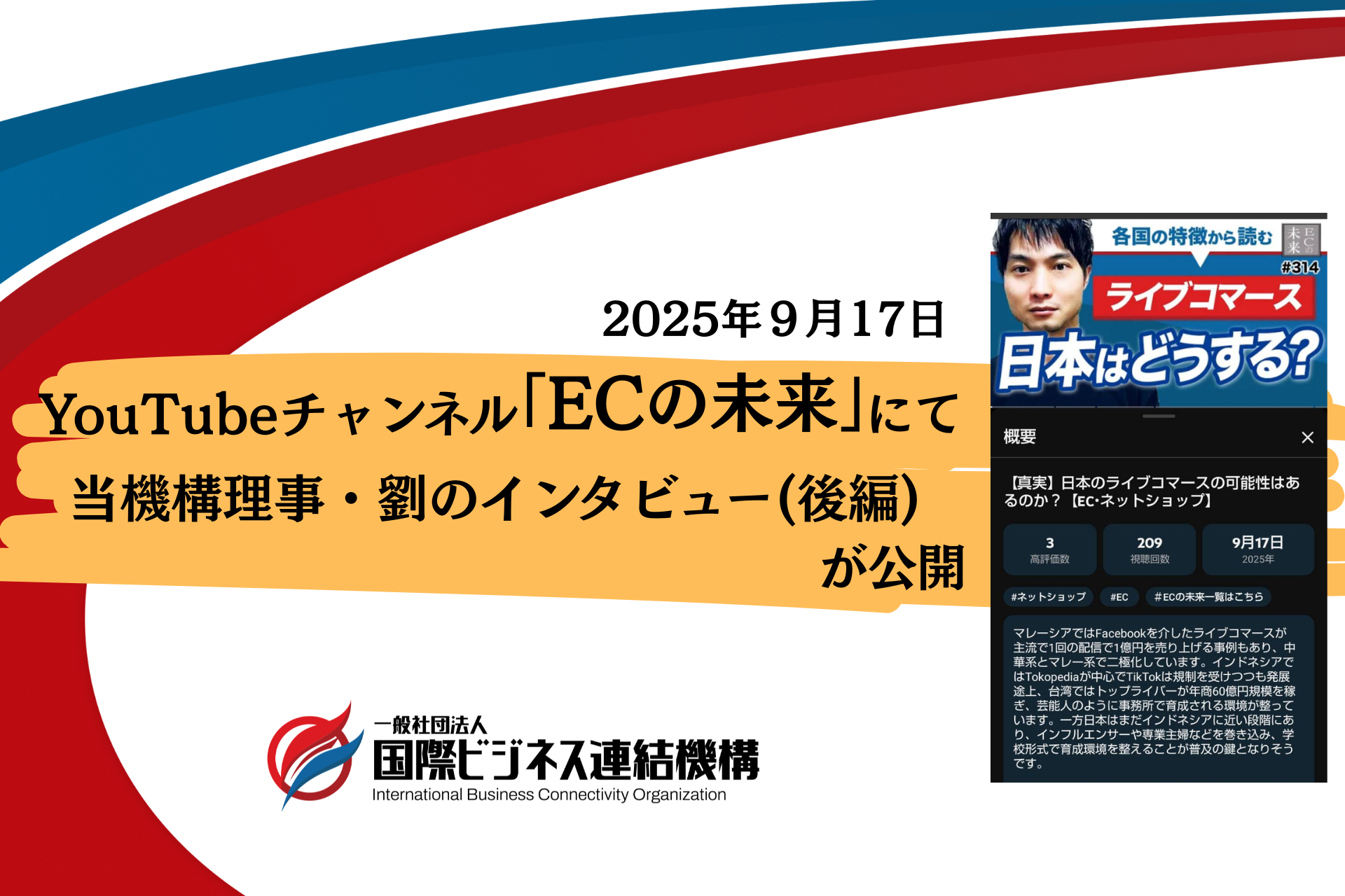 インタビュー後半では、劉理事は、日本でのライブコマース発展の可能性について語り、アジアとの違いや人材育成・仕組みづくりの重要性を紹介しています。